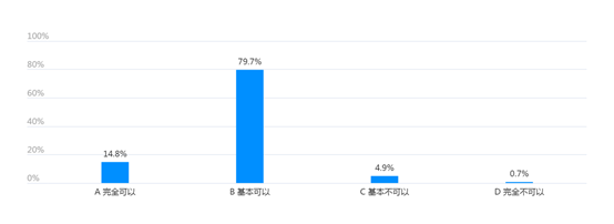 学生对在线课堂所学内容掌握情况良好,基本实现线上线下实质等效。14.8%的学生“完全可以掌握”, 79.7%的学生“基本可以掌握”,具体情况如图11所示。