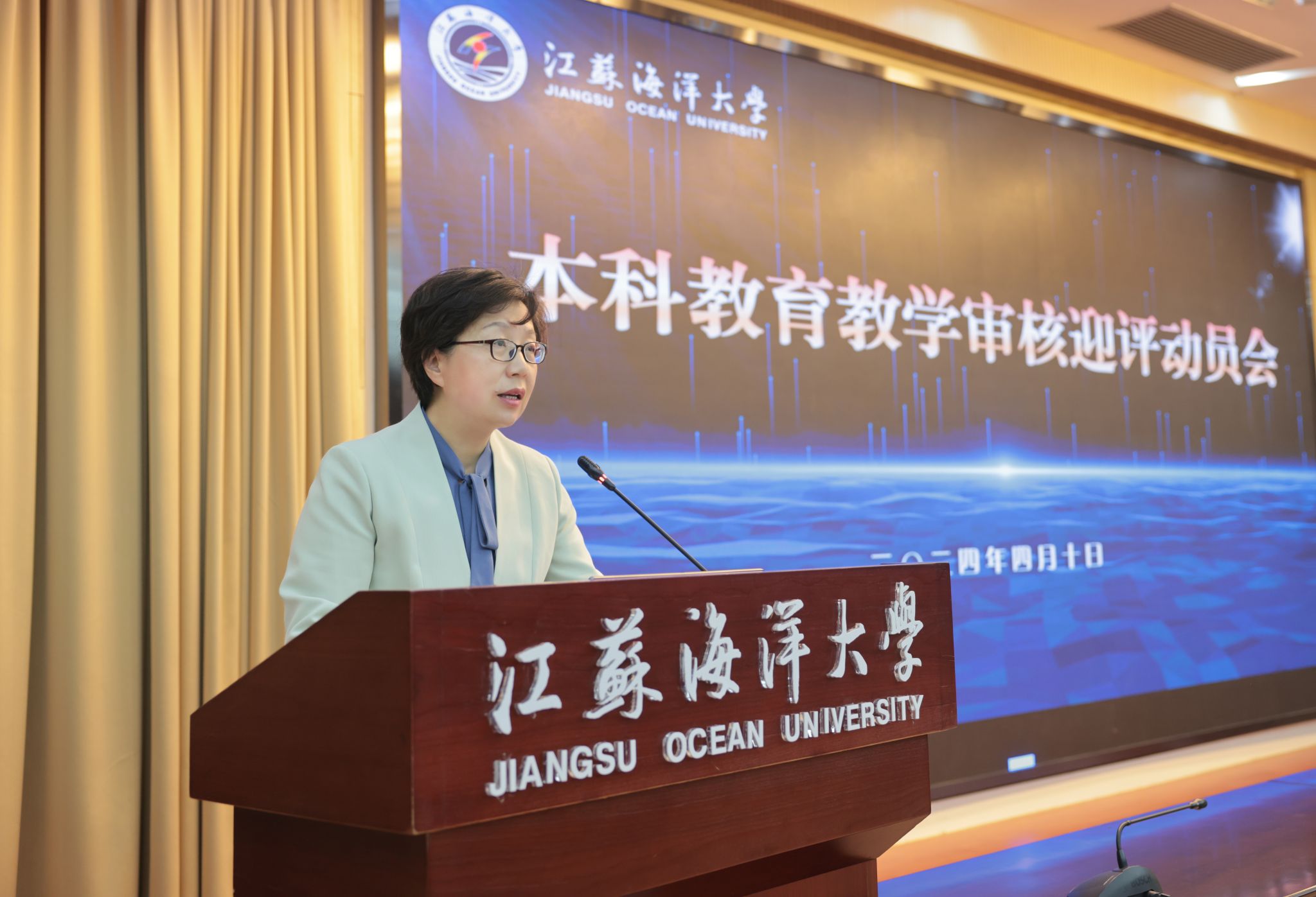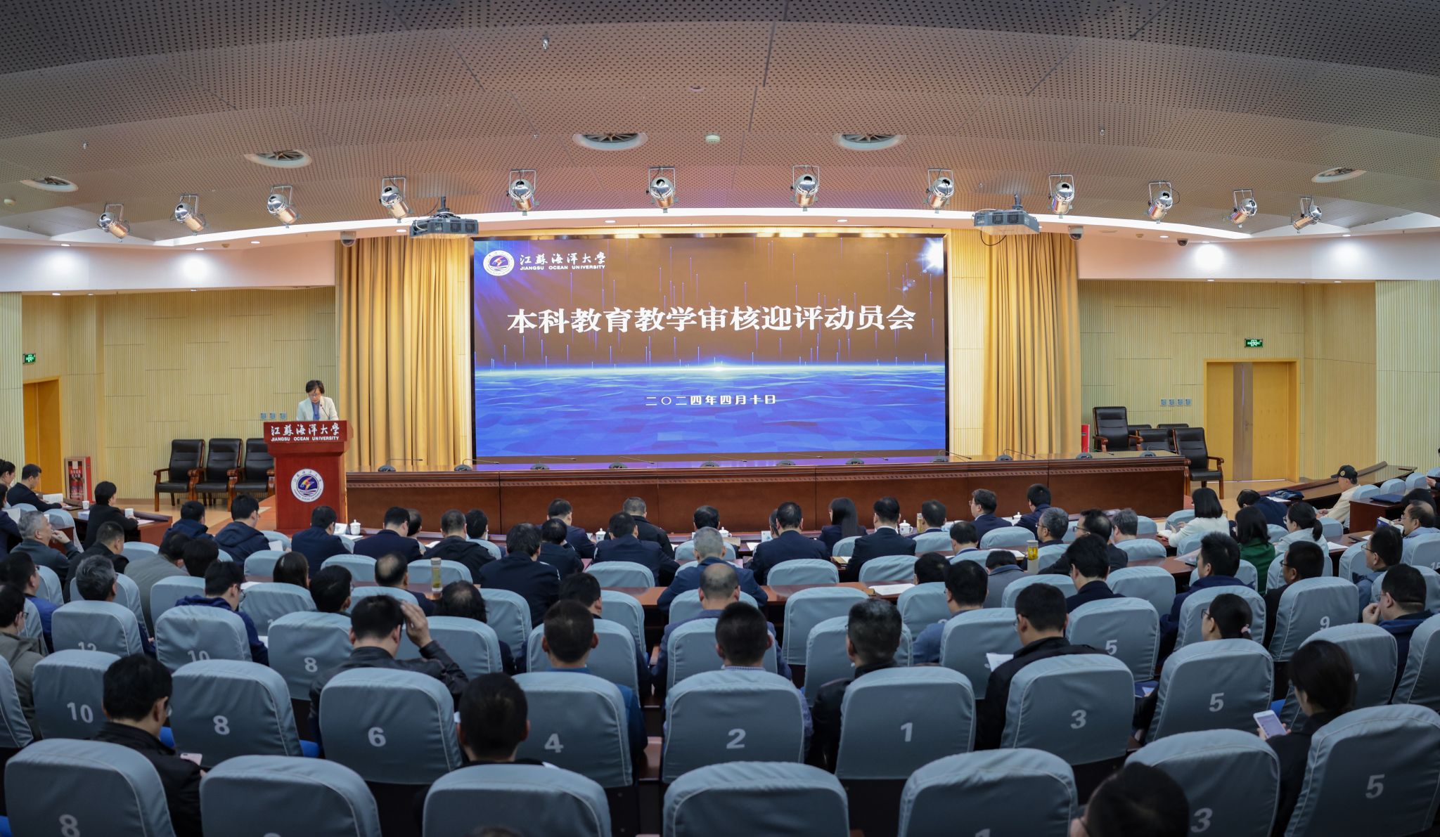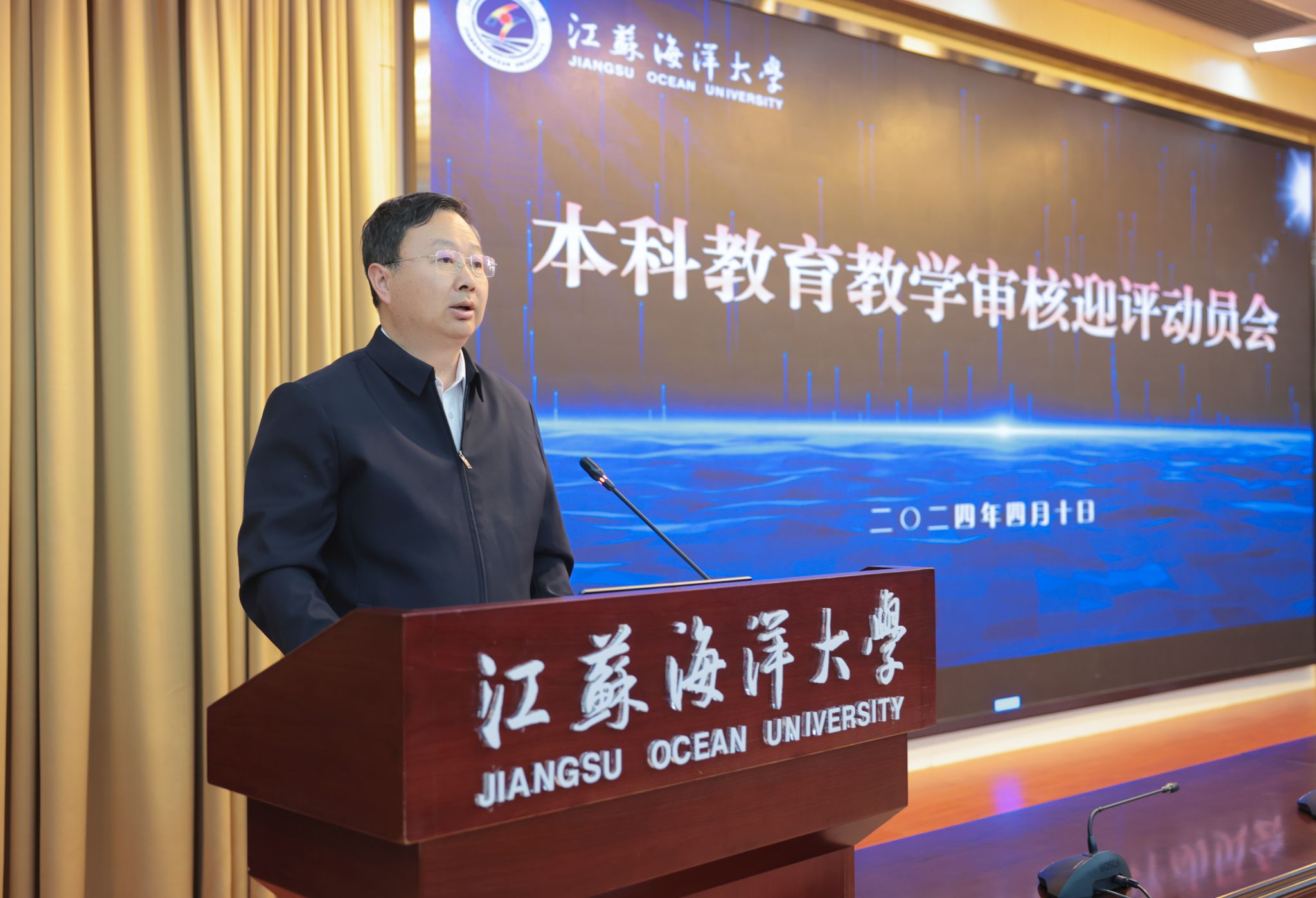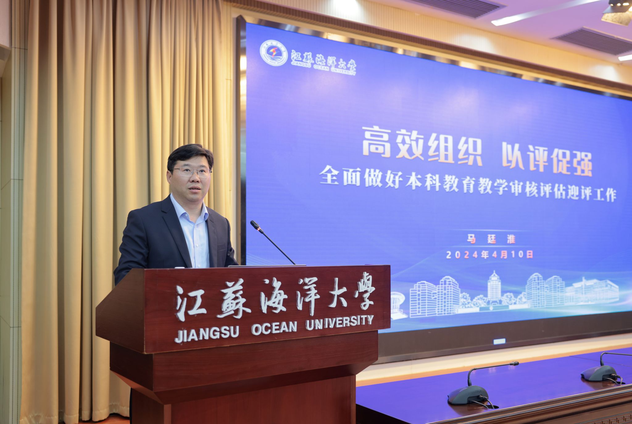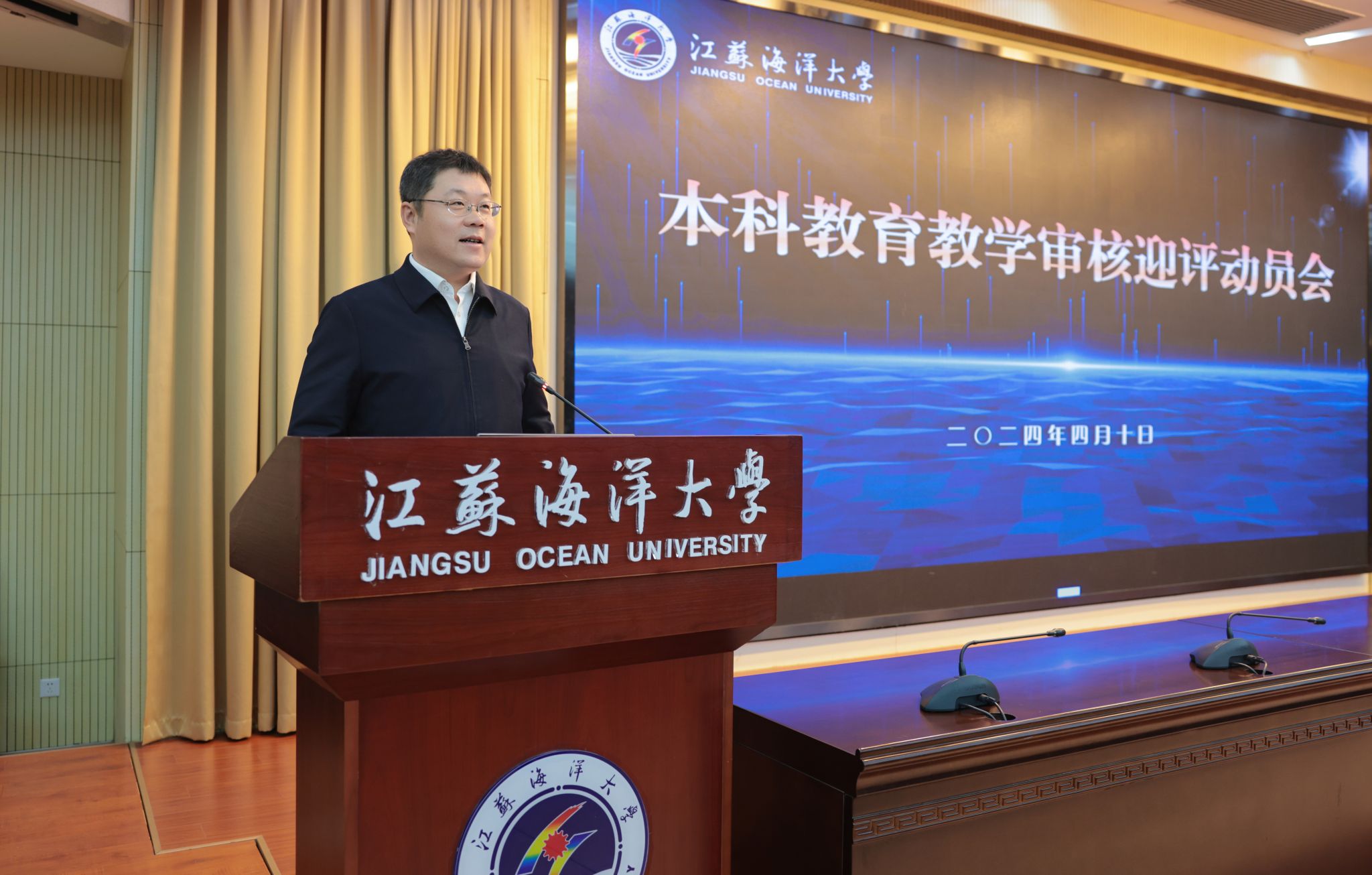根据省教育厅关于本科教育教学审核评估的工作安排,我校将于4月15日至5月8日迎来线上评估,5月初迎来入校评估。为了扎实做好本科教育教学审核评估各项工作,我校于4月10召开本科教育教学审核评估迎评工作动员会,对相关工作进行全面动员部署。本次会议通过线上线下相结合的形式同步进行,主会场设在会议中心黄海厅,线上分会场设于各单位、各部门会议室。全体校领导出席会议,会议由校党委副书记李梅英主持。