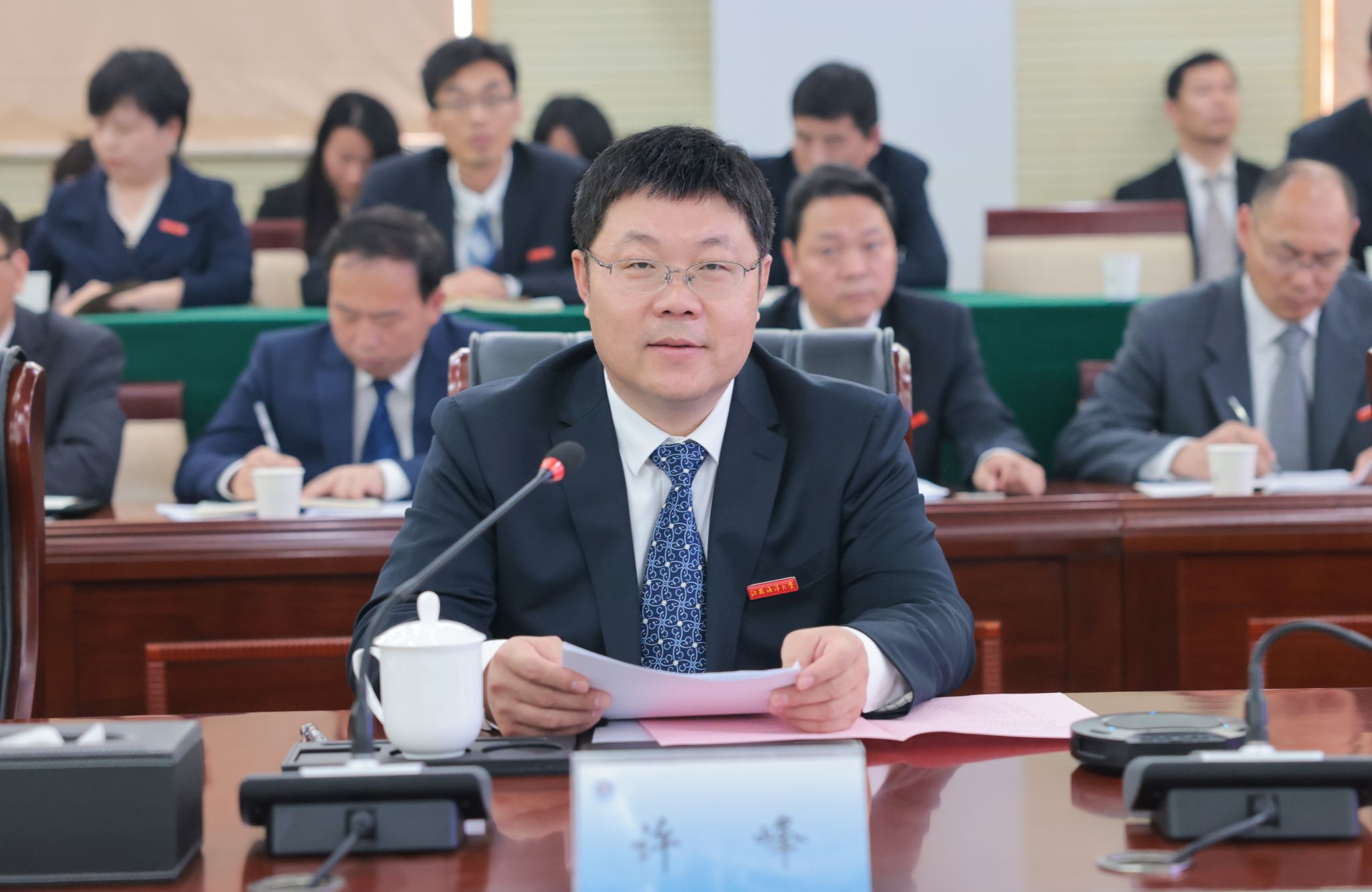 校长宁晓明结合审核评估自评报告作补充说明。宁晓明表示,自启动新一轮审核评估工作以来,学校围绕立德树人根本任务,积极构建高质量本科教育教学体系,开展了多方面工作,取得了新进展。一是以质量立本,聚焦聚力立德树人根本任务。聚焦本科人才培养,持续强化教育教学改革、专业建设和师资队伍建设,全员育人能力和人才培养质量实现了稳中有进、持续向好。二是以改革提质,落细落实审核评估工作要求。坚持以评促建、以评促强,开展自评、自建、自改工作,不断加强本科内涵建设,着力推动本科教育教学高质量发展。三是以特色求进,全面提升办学治校能力水平。以“四个服务”为办学治校的着力点,以江苏沿海高质量发展需求为导向,坚持以“海洋+”“融合+”打造办学特色、提升育人质量。