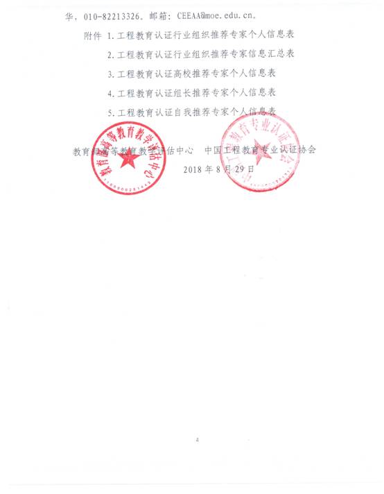附件:1. 中国工程教育专业认证协会关于推荐工程教育认证