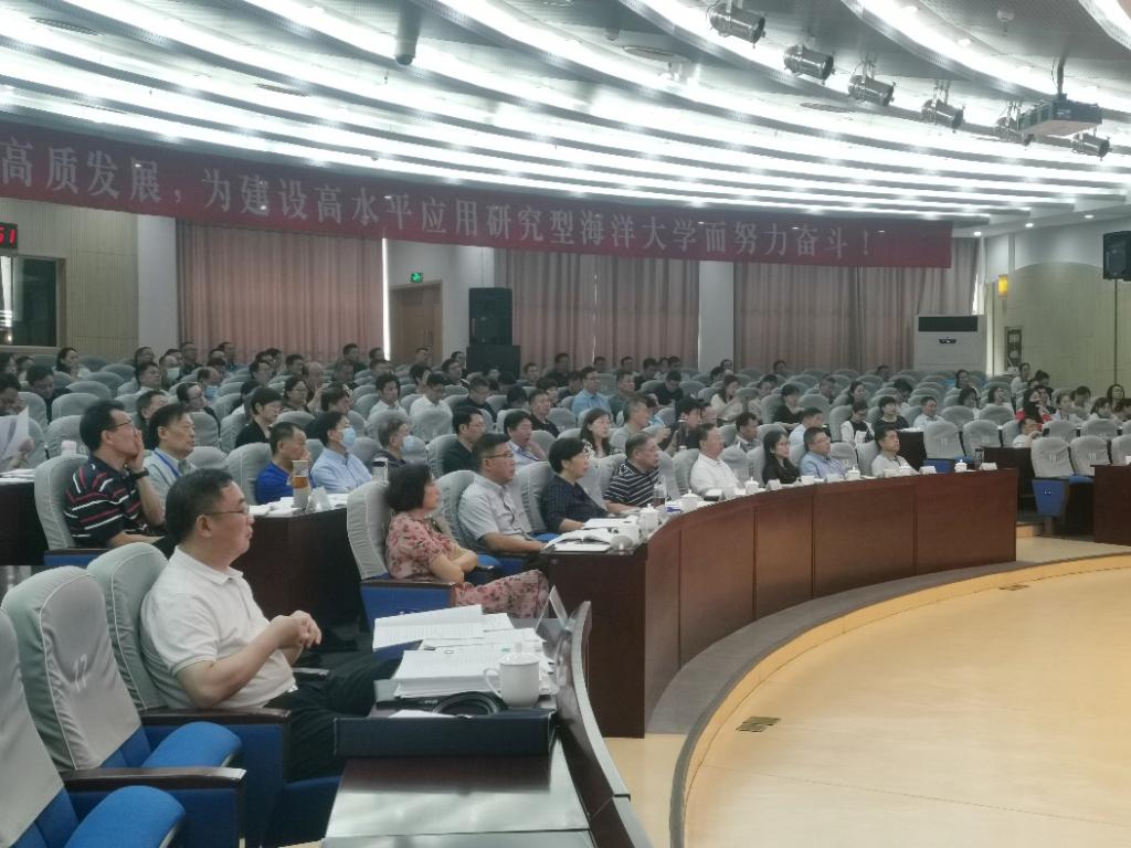 7月10日上午,本科教育教学审核评估专项工作组评建工作检查汇报会在会议中心黄海厅召开。校党委常委、副校长严云洋主持会议,并对做好专项检查和评建工作提出明确要求。办学方向、培养过程、教学资源、教师队伍、学生发展、质量保障和教学成效等7个专项工作组组长单位负责人,从审核评估各一级指标下审核重点的自评情况、评建成效、存在问题及改进举措、相关“红线”“底线”定量指标数据达标情况等方面逐一作了汇报。教学质量管理处负责人详细汇报了学校审核评估评建工作的总体进展情况,对新一轮审核评估审核重点和本次专项检查方式进行了具体说明。校审核评估咨询专家组组长焦明连教授、校本科教学督导组刘平昌教授分别对各组汇报情况做了现场点评和意见反馈。