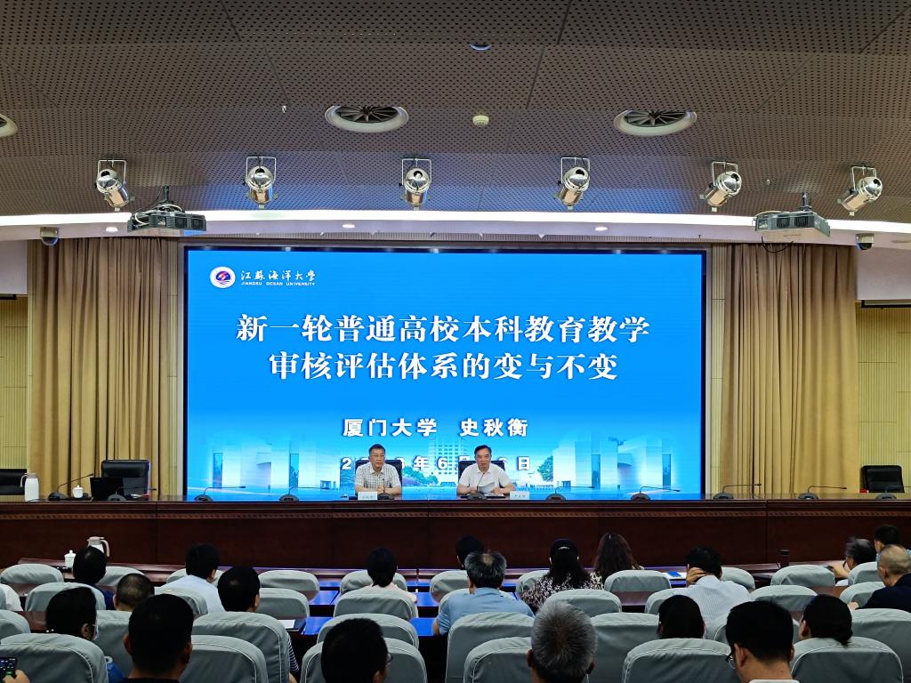 6月26日下午,学校特邀全国高校设置评议委员会、教育部中国教育智库联盟顾问委副主任、国务院政府特殊津贴专家、厦门大学史秋衡教授,作了题为“新一轮普通高校本科教育教学审核评估体系的变与不变”的专题辅导报告。校党委常委、副校长严云洋主持报告会。